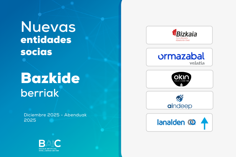 BAIC suma cinco nuevas entidades socias al cierre de 2025, consolidando así un año marcado por la expansión y la colaboración en torno a la inteligencia artificial aplicada en Euskadi. La incorporación de Diputación Foral de Bizkaia, Ormazabal, OKIN, Aindeep y Lanalden aporta una valiosa diversidad de enfoques, capacidades tecnológicas y visión sectorial al ecosistema.