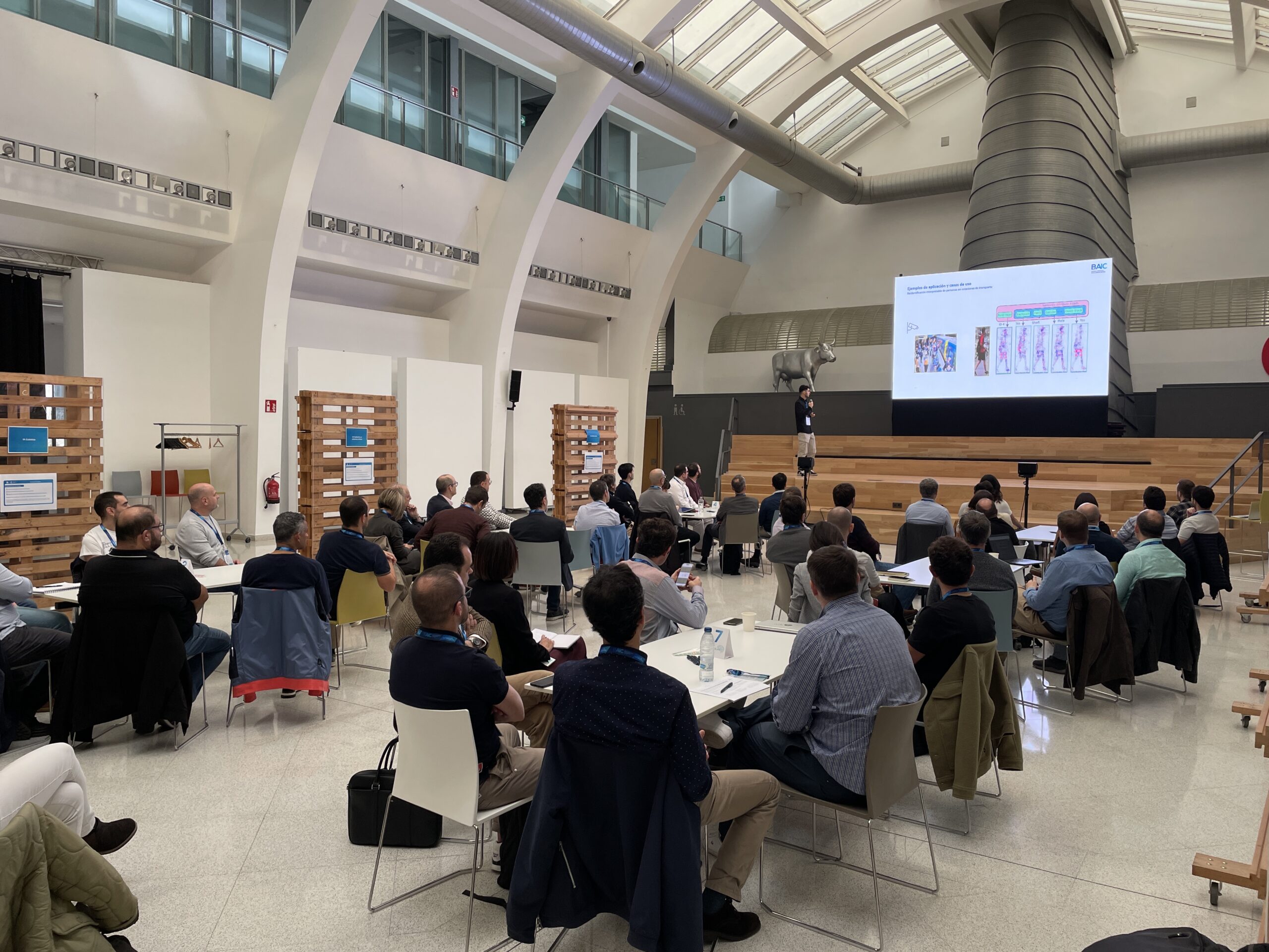 Hasierako ongietorriaren ondoren, adimen artifizialeko zazpi teknologia berrien aurkezpenean sartu ginen bete-betean. Tecnalia, Tekniker, Lortek, Ceit, Vicomtech eta Ikerlan erakundeek aurrerapen garrantzitsuenak partekatu zituzten hainbat arlotan, hala nola algoritmo berdeetan eta eraginkortasun konputazionalean, AA kuantikoan, ingurune kritikoetan azal daitekeen AAn, ereduen auditabilitatean eta trazabilitatean, federated learning eta Edge AAn pribatutasuna babesteko, AA giza ekintzarekin konbinatzen duten sistema hibridoetan eta, azkenik, ingurune industrialari aplikatutako AA generatiboan.